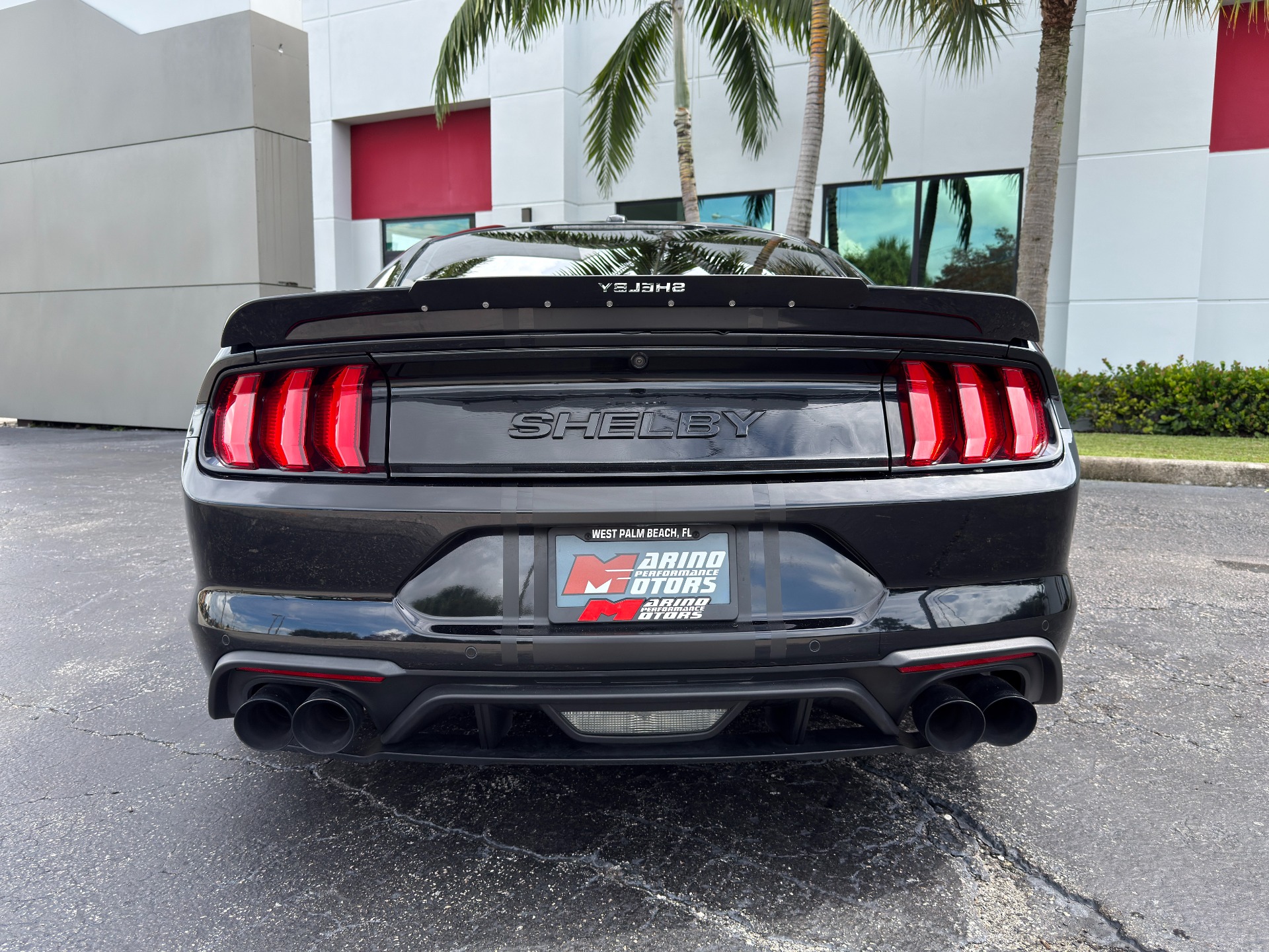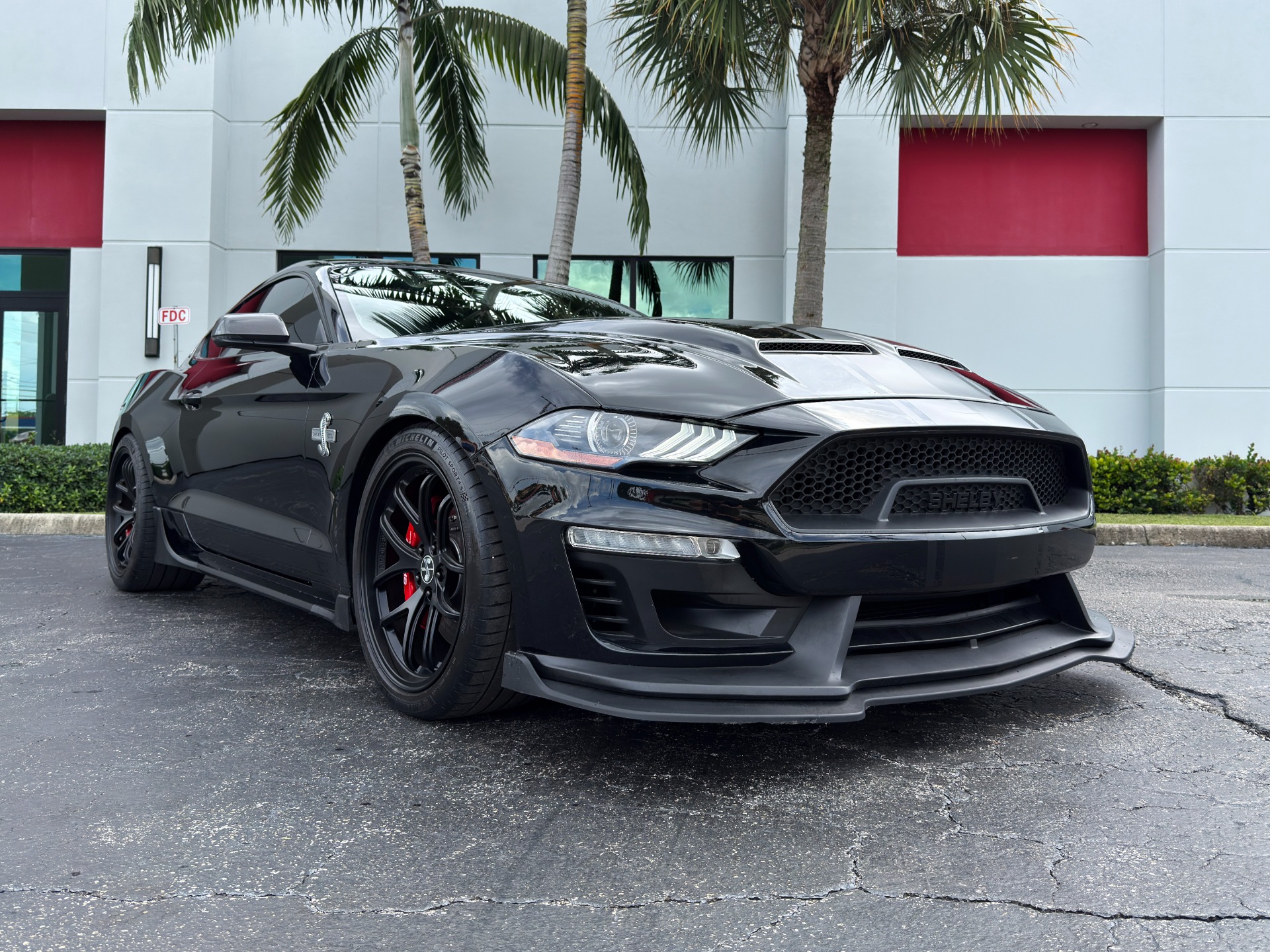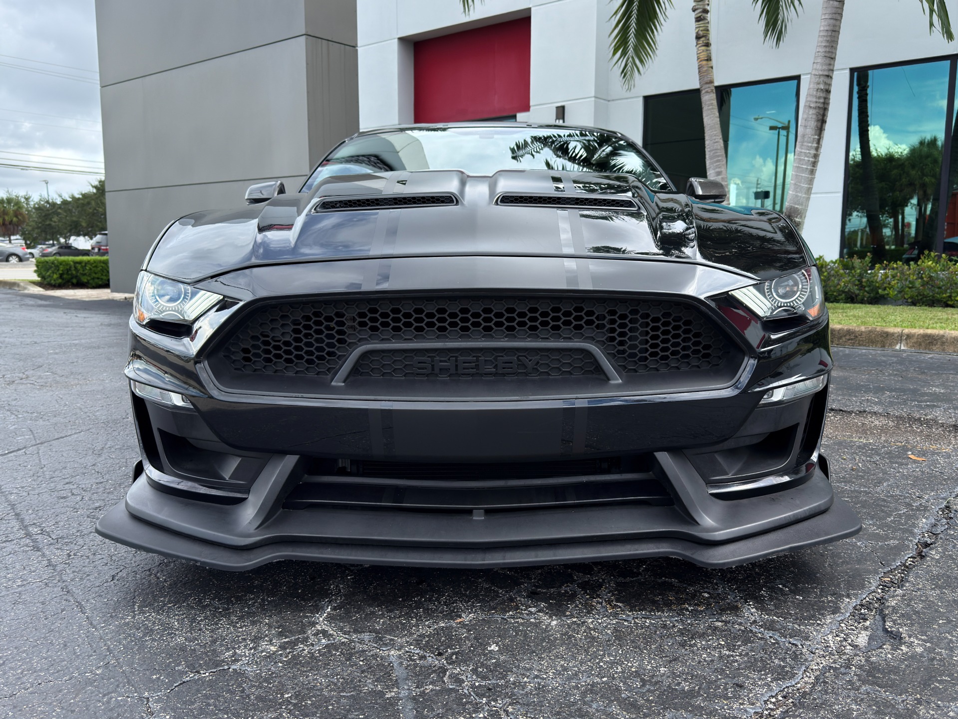 This 2018 Shelby Mustang Super Snake is a rare and highly desirable build from Shelby American, blending Ford's iconic 5.0L V8 with an exclusive suite of Shelby performance upgrades. Finished in Shadow Black with aggressive Black Vinyl Racing Stripes, this coupe embodies American muscle heritage and track-ready precision.