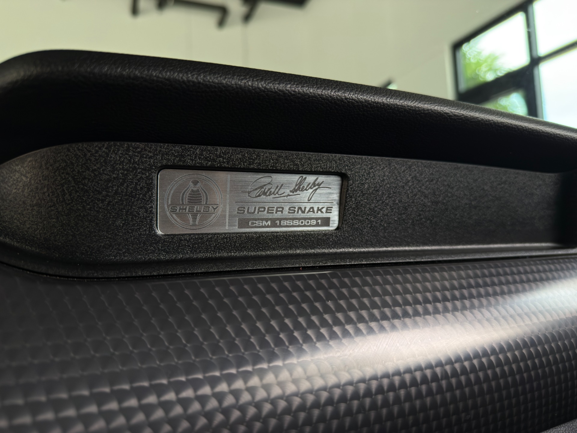 Beyond its stunning looks, this Super Snake delivers unmatched handling thanks to its Shelby Track Suspension, Brembo Brakes, and Performance Half Shafts. Inside, custom two-tone leather and Shelby serial plaques remind you this is a hand-built, limited-production masterpiece.