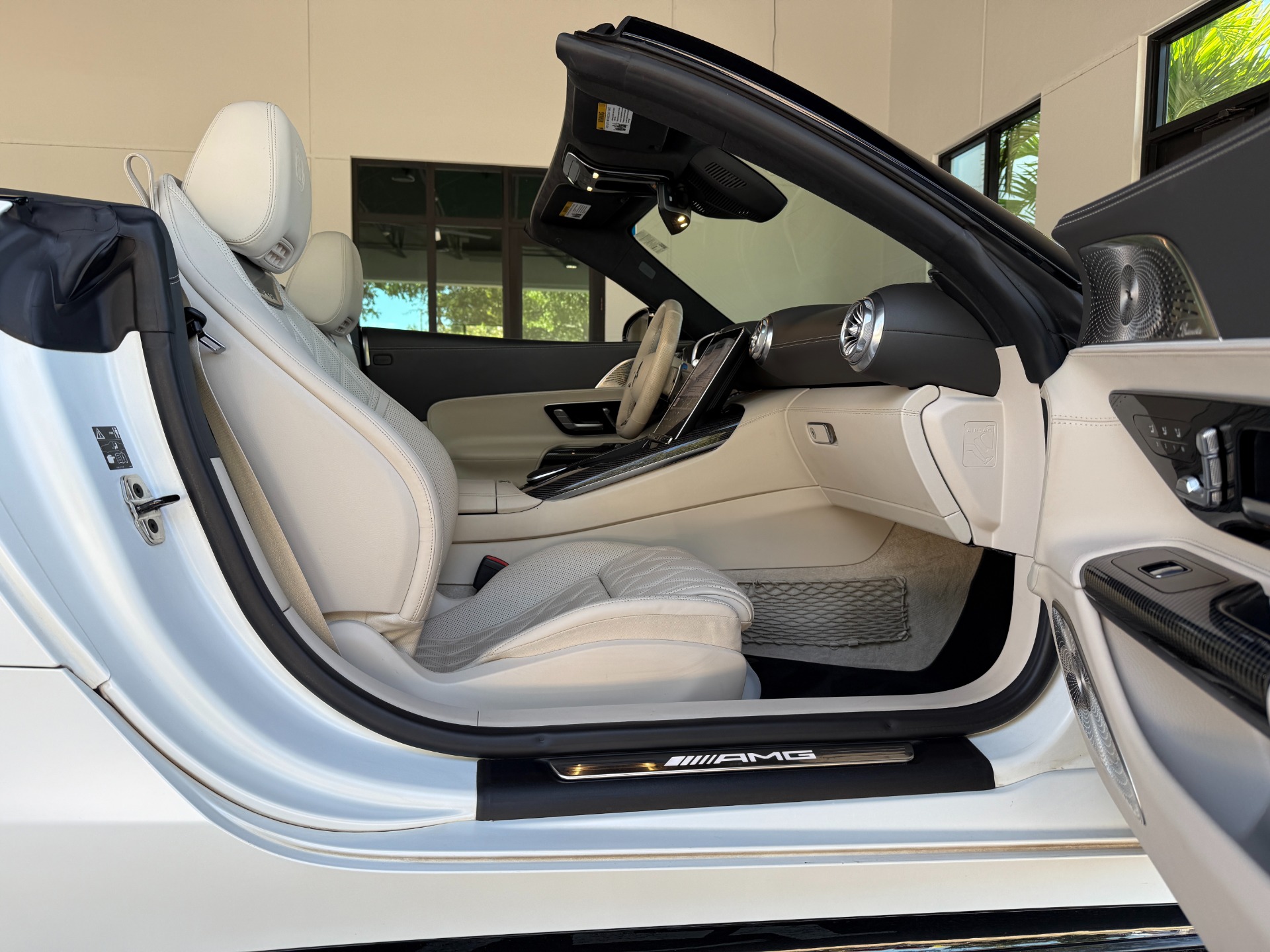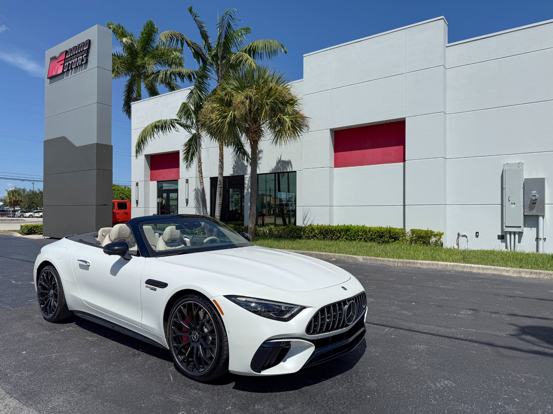 The 2022 Mercedes-Benz SL-Class AMG SL 55 Roadster embodies modern performance and luxury in an open-top design. Powered by a 4.0L Twin Turbo V8 producing 469 horsepower and 516 lb-ft of torque, paired to a 9-speed automatic transmission and all-wheel drive, it delivers thrilling performance with everyday usability. Finished in MANUFAKTUR Moonlight White Magno over a STYLE Exclusive Macchiato Beige and Titan Grey Nappa Leather interior, this SL 55 is equipped with standout features including the AMG Night Package, AMG Carbon Fiber Trim, Burmester 3D Surround Sound System, Head-Up Display, and Driver Assistance Package. Premium details such as the Macchiato Beige Microfiber Headliner and AMG 21" wheels highlight its elegance and sporting character.